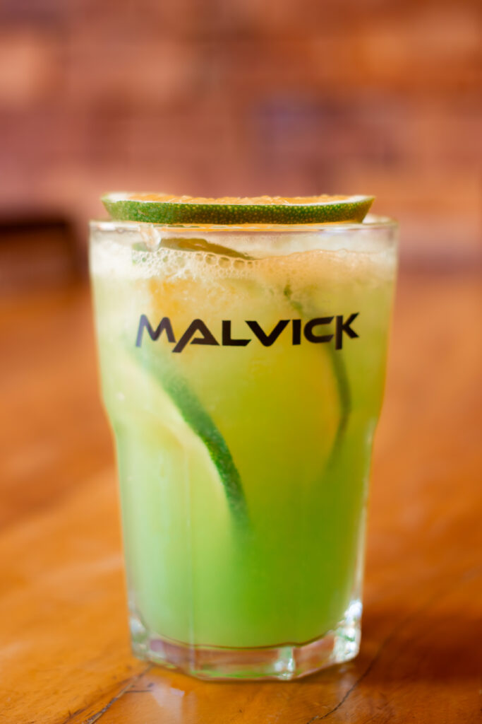 Ingredientes:• 50 ml Malvick Maçã Verde• 25 ml Gin• 15 ml Suco de Limão Taiti• 80 ml Suco de Laranja• Gelo Classificação:Drink Batido Modo de Preparo:Em uma coqueteleira, adicione os ingredientes e bata levemente durante poucos segundos.Em um copo Bistrol, sirva o drink.Decore com Laranja. APRENDA A FAZER SEU DRINK! https://malvick.com/wp-content/uploads/2024/06/Brilho-da-Alvorada-Tutorial.mov